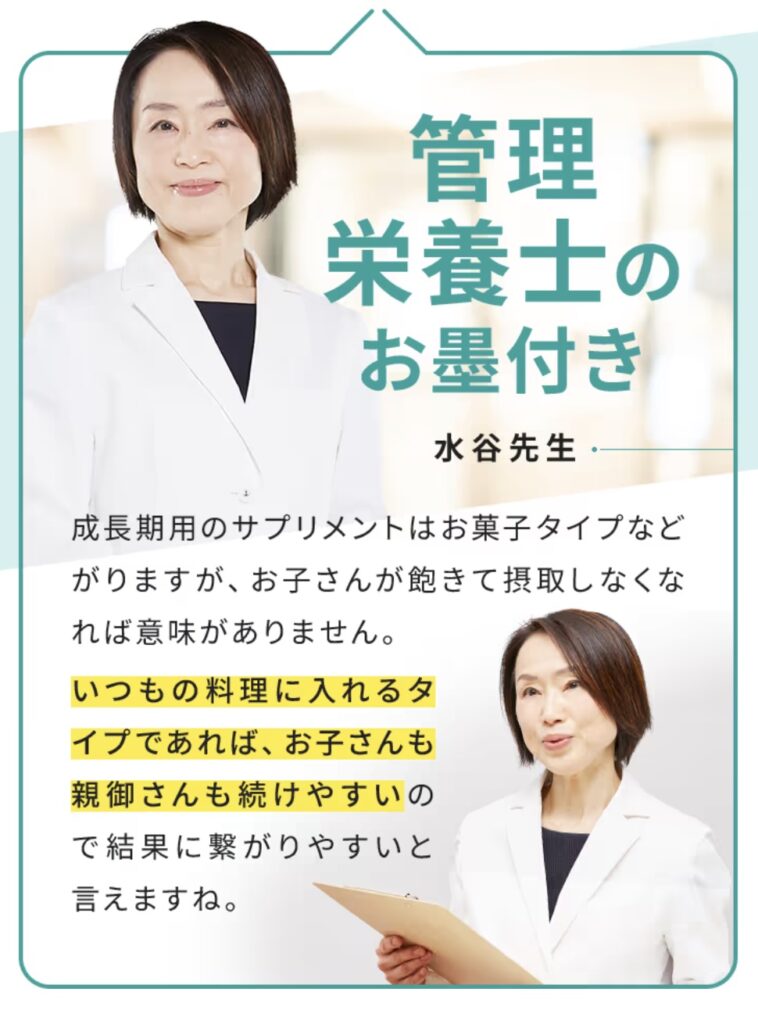 これ、1ヶ月続けてみてください。無味無臭なので嫌がらずに毎日食べてくれるから助かります。学校の先生に『最近成長しましたね』って言われた時は本当に嬉しかったです。